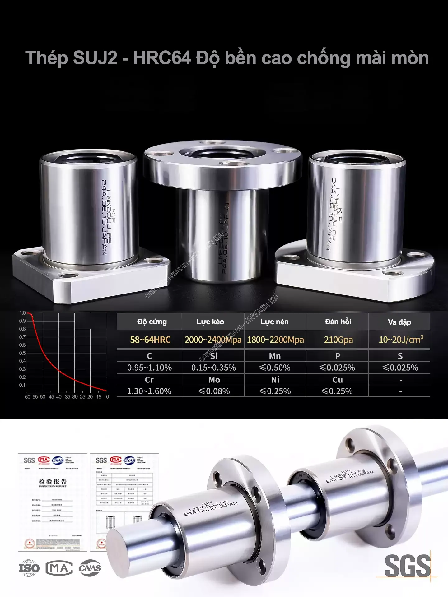 Con trượt tròn mặt bích vuông thân ngắn LMK25UU (Bi trượt tròn)