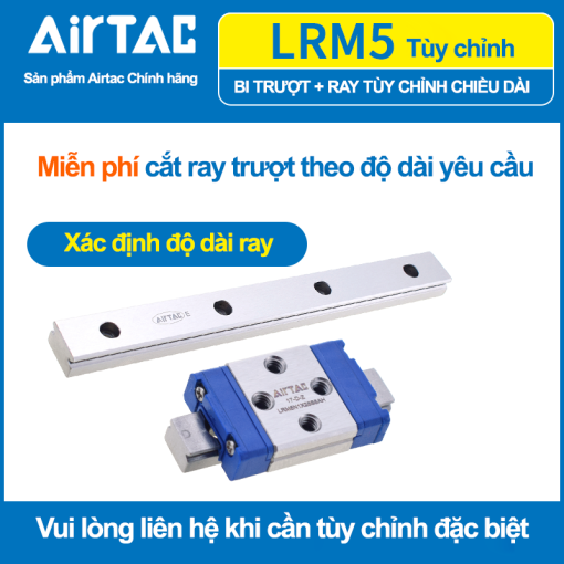 Airtac LRM là dòng con trượt tuyến tính mini (Miniature Linear Guide), sử dụng bi tuần hoàn 4 dãy tiếp xúc 45°. Sản phẩm được thiết kế cho máy CNC cỡ nhỏ, máy in 3D, máy khắc laser và các thiết bị tự động hóa yêu cầu độ chính xác cao, kích thước nhỏ gọn và vận hành tốc độ cao.