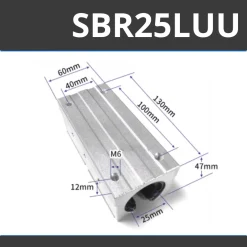 Mã sản phẩm (Model) SBR10UU, SBR12UU, SBR16UU, SBR20UU (tùy phiên bản)
