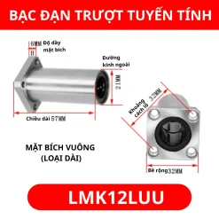 Con trượt tròn mặt bích vuông thân dài LMK12LUU (Bi trượt tròn)