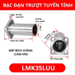 Con trượt tròn mặt bích vuông thân dài LMK35LUU (Bi trượt tròn)