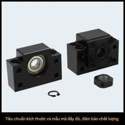 - Vật Liệu Cao Cấp: Trục vít me được chế tạo từ thép hợp kim cao cấp với bề mặt tôi cứng đạt độ cứng HRC 58-62, chống mài mòn và gỉ sét hiệu quả. Gối đỡ trục vít me bền bỉ sử dụng vòng bi chất lượng cao từ các thương hiệu hàng đầu, đảm bảo độ ổn định và tuổi thọ lên đến hàng nghìn giờ vận hành.