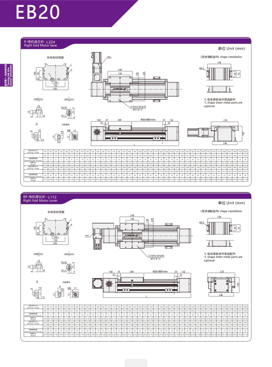 EB20 Module truyền động tuyến tính dây đai Dòng EB (Mô-đun tuyến tính đai định thời đa năng)