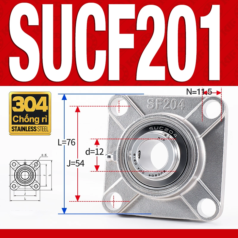 Gối đỡ vòng bi SUCF201 (Inox 304 – Đường kính trong 12 mm)