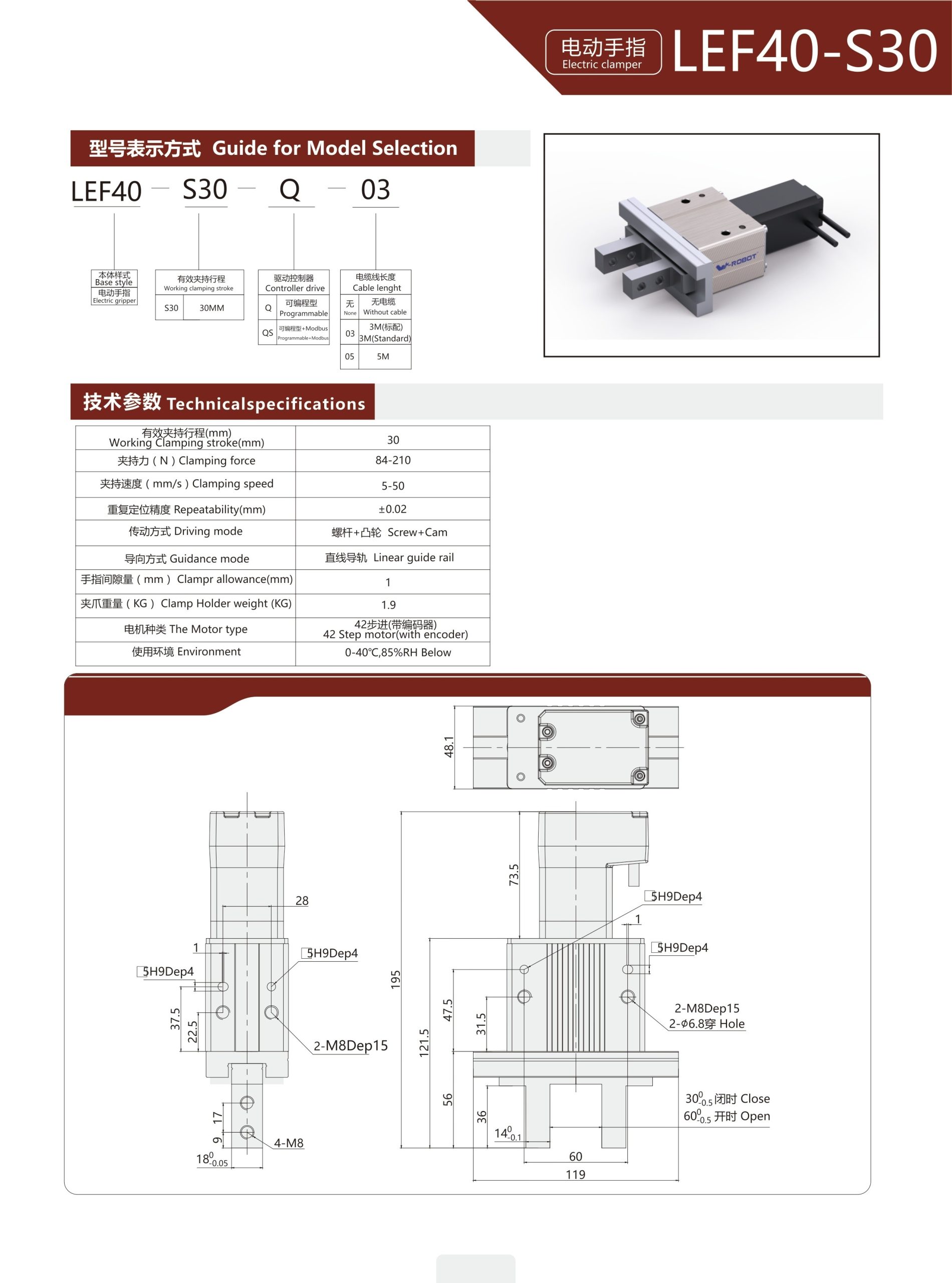 LEF40-S30 Module kẹp Dòng LEF (Kẹp điện)