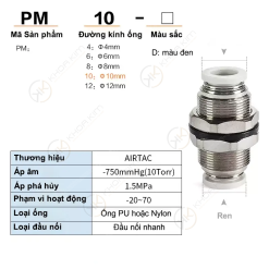 Bảng mã sản phẩm đầy đủ – Cút nối thẳng ren siết PM Airtac