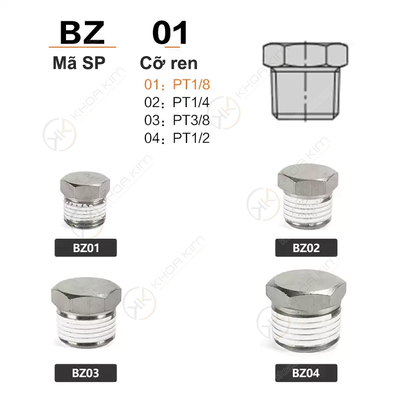 Sản phẩm tương thích với nhiều tiêu chuẩn ren phổ biến trong hệ thống khí nén, phù hợp với đa dạng ứng dụng trong tự động hóa, sản xuất công nghiệp và các hệ thống khí nén yêu cầu độ kín cao. Khi lựa chọn ốc bịt BZ Airtac tại Khoa Kim Việt Nam, khách hàng được cam kết hàng chính hãng 100%, đầy đủ CO/CQ, giá cạnh tranh, tư vấn kỹ thuật tận tình và giao hàng nhanh toàn quốc, mang đến giải pháp bịt kín cổng ren hiệu quả, an toàn và bền bỉ lâu dài.