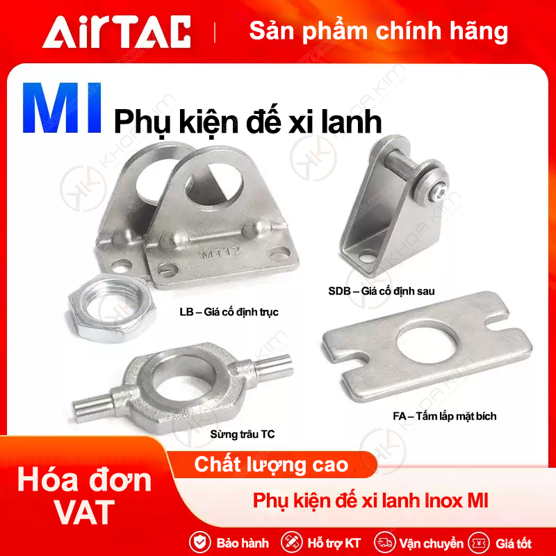Phụ kiện xi lanh MI – Airtac chính hãng do Khoa Kim Việt Nam phân phối bao gồm đầy đủ các giải pháp lắp đặt và liên kết cho xi lanh tròn mini như giá đỡ LB, gá sau SDB, sừng trâu TC, tấm lắp mặt bích FA, khớp nối và ty liên kết tiêu chuẩn. Sản phẩm được gia công từ vật liệu inox chất lượng cao, đảm bảo độ bền cơ học, khả năng chống ăn mòn tốt và hoạt động ổn định trong môi trường công nghiệp khắc nghiệt như ẩm, bụi hoặc hóa chất nhẹ. Phụ kiện MI Airtac giúp cố định xi lanh chắc chắn, giảm rung lắc, hạn chế sai lệch trục và tăng tuổi thọ cho hệ thống khí nén. Với thiết kế chuẩn hóa theo từng đường kính như M8, M10, M12, M16…, các phụ kiện dễ dàng lắp đặt, thay thế nhanh chóng và tương thích hoàn hảo với xi lanh Airtac dòng MI. Đây là lựa chọn tối ưu cho các ứng dụng tự động hóa như máy đóng gói, dây chuyền lắp ráp, cơ cấu kẹp – đẩy – chặn và hệ thống điều khiển khí nén chính xác. Khoa Kim Việt Nam cam kết cung cấp phụ kiện Airtac chính hãng, đầy đủ CO/CQ, hỗ trợ kỹ thuật tận tâm, giao hàng nhanh toàn quốc với mức giá cạnh tranh, giúp doanh nghiệp tối ưu hiệu suất vận hành và chi phí bảo trì lâu dài.