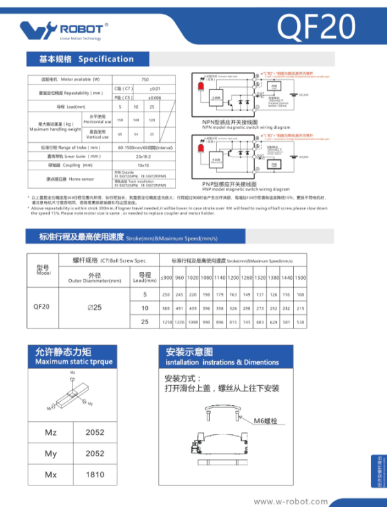 QF20 Module truyền động tuyến tính vít me Dòng QF (Siêu mỏng, Hành trình ngắn)