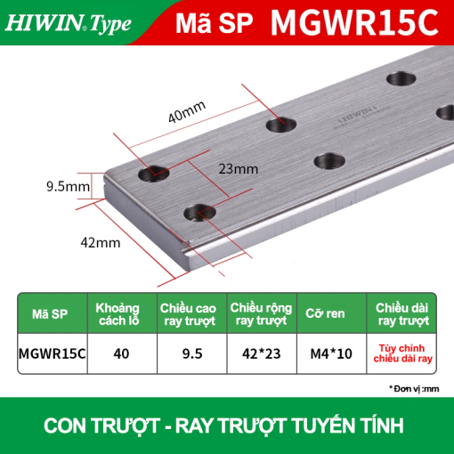 Ray trượt vuông mini ray rộng MGWR15R (Hiwin type)