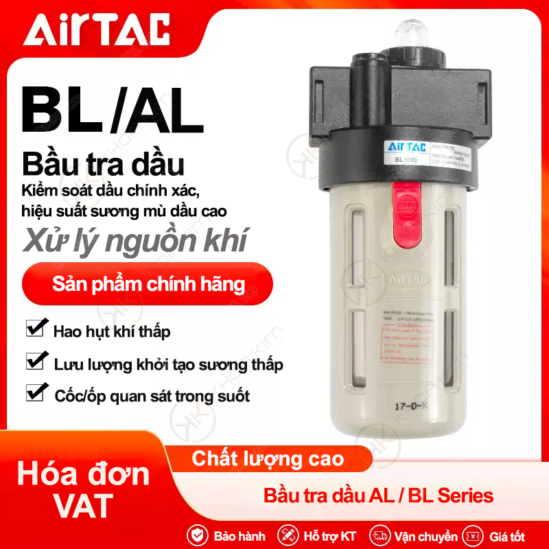 Tra dầu BL – Airtac chính hãng do Khoa Kim Việt Nam phân phối là thiết bị bầu tra dầu (Lubricator) chuyên dùng trong hệ thống khí nén, giúp bổ sung dầu bôi trơn dạng sương mịn vào dòng khí trước khi cấp đến các thiết bị như van điện từ, xy lanh và cơ cấu chấp hành. Nhờ cơ chế phun dầu tự động và phân bố đều theo lưu lượng khí, BL Airtac giúp giảm ma sát, hạn chế mài mòn và kéo dài tuổi thọ cho toàn bộ hệ thống khí nén.