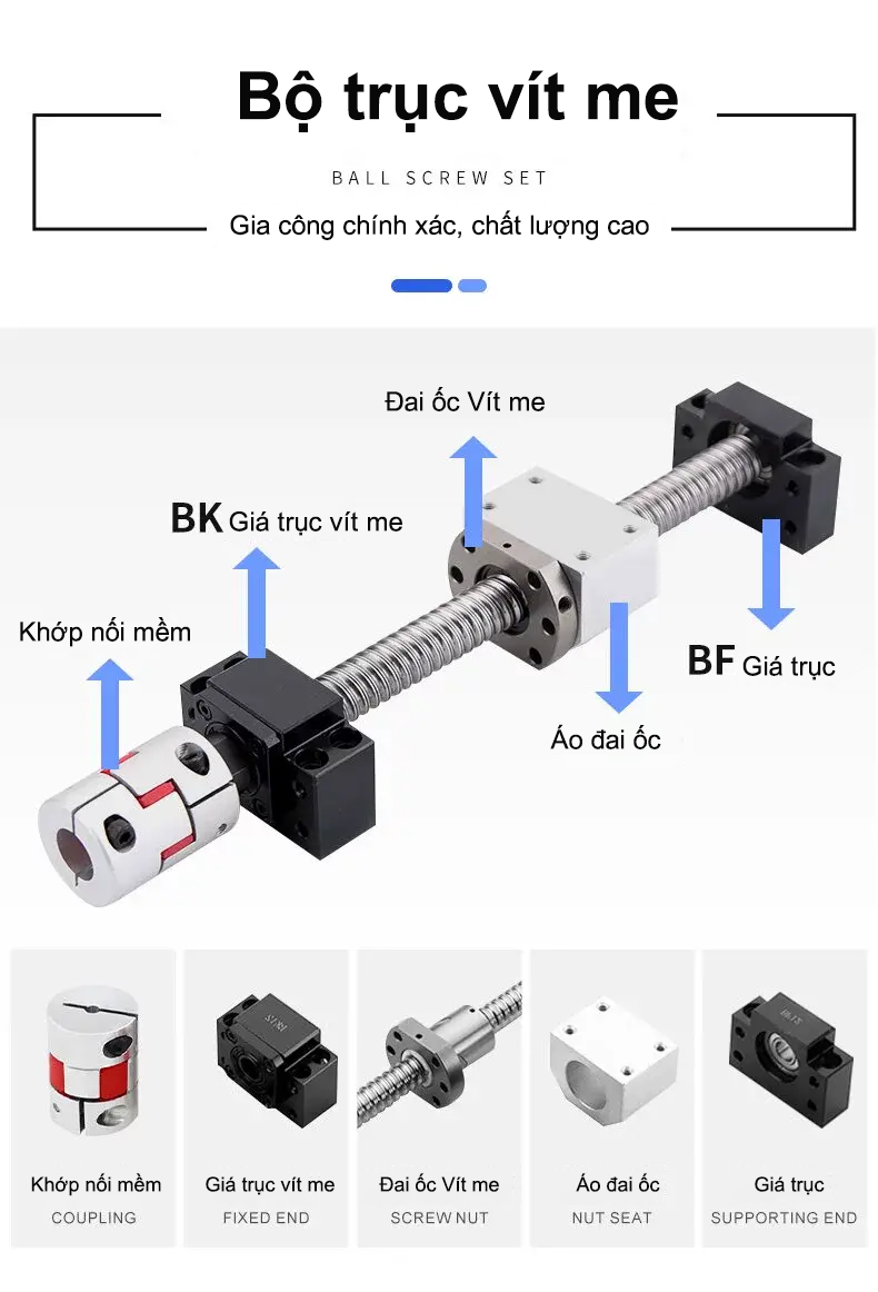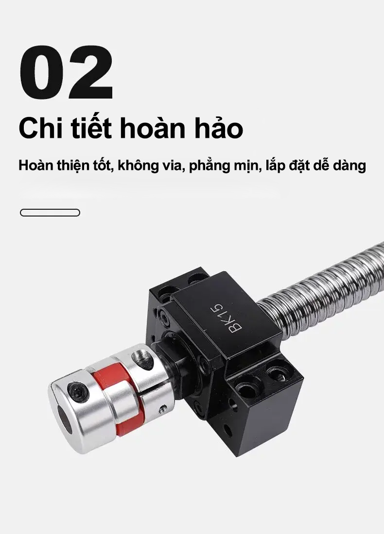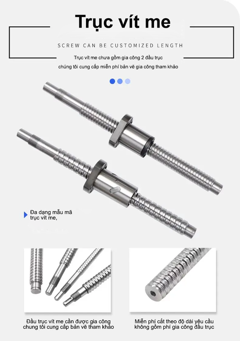 Website: cncmotion.vn • Hỗ trợ kỹ thuật & báo giá nhanh. *Thông số tham khảo; có thể thay đổi theo từng hãng. Vui lòng đối chiếu catalog trước khi đặt hàng. Ngoài ra có thể đặt theo chiều dài tùy chỉnh, preload (C0, C1, C2...), hoặc vật liệu đặc biệt chống gỉ.Trục vít me SFU – Ball Screw độ chính xác cao cho máy CNC