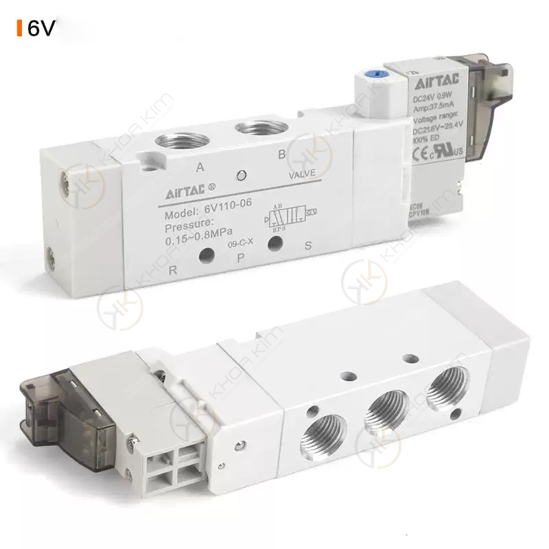 Van điện từ Airtac 6V Series là dòng van khí nén 5 cửa,