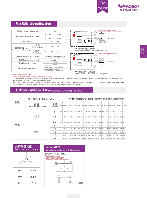 VC22 Module truyền động tuyến tính vít me Dòng VC (Chống xoắn, Tải trọng nặng)