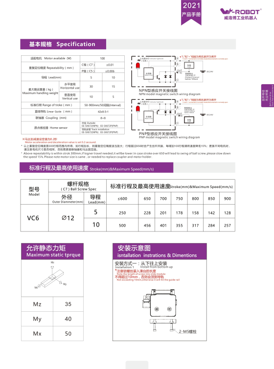 Website: cncmotion.vn • Đại lý W-Robot Việt Nam – hỗ trợ kỹ thuật & báo giá trong ngày. *Thông số theo tài liệu W-Robot, có thể tùy biến theo nhu cầu khách hàng. *Nguồn: W-Robot Product Selection Manual V1.3 – trang 47–49.Module tuyến tính VC4 Series – Precision Fully Enclosed Ball Screw Actuator của W-Robot