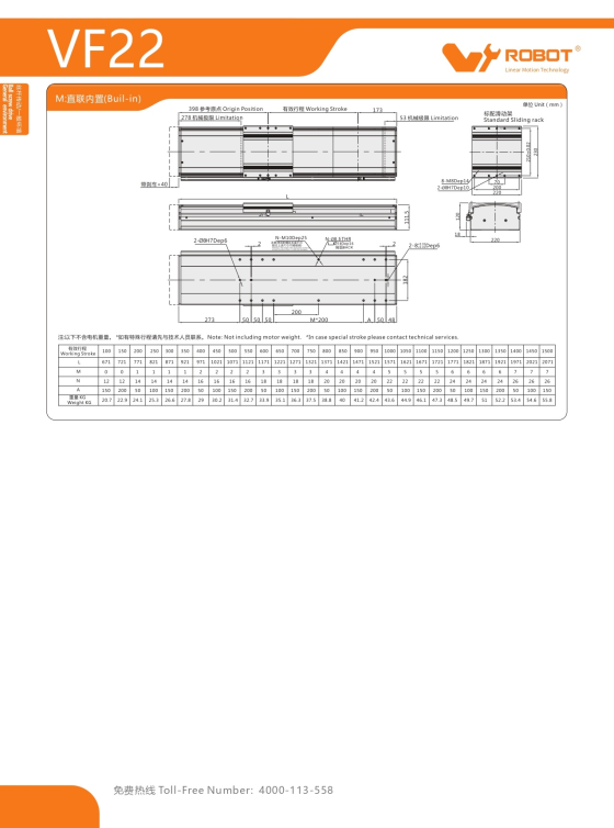 VF22 Module truyền động tuyến tính vít me Dòng VF (Chống xoắn)