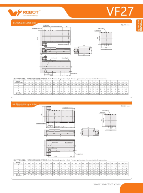 VF27 Module truyền động tuyến tính vít me Dòng VF (Chống xoắn)
