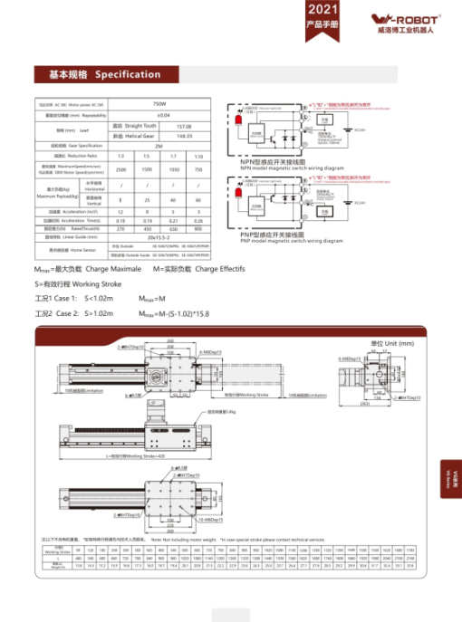 CNC Motion Việt Nam – Đại lý W-Robot: tư vấn chọn model, dựng bản vẽ, báo giá nhanh trong ngày. *Hành trình có thể tùy biến theo yêu cầu nhờ cấu trúc modular. Thông số tải mang tính tham chiếu khi lắp ngang với gá đặt đúng kỹ thuật. VG17 là lựa chọn phổ biến để dựng trục X/Y của robot gantry nhờ cân bằng tốt giữa hành trình, tải và giá thành. *Chọn model theo tải/độ cứng yêu cầu, hành trình, mô-men lật của đồ gá và yêu cầu chu kỳ. Lưu ý an toàn: luôn lắp chặn cơ khí hai đầu; cấu hình giới hạn mềm trong PLC/drive; cài E-stop & công tắc an toàn.VG Series – Module tuyến tính truyền thanh răng & bánh răng cho hành trình dài & tải nặng