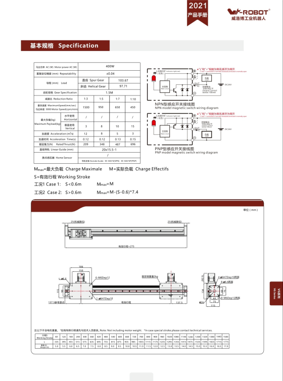 CNC Motion Việt Nam – Đại lý W-Robot: tư vấn chọn model, dựng bản vẽ, báo giá nhanh trong ngày. *Hành trình có thể tùy biến theo yêu cầu nhờ cấu trúc modular. Thông số tải mang tính tham chiếu khi lắp ngang với gá đặt đúng kỹ thuật. VG17 là lựa chọn phổ biến để dựng trục X/Y của robot gantry nhờ cân bằng tốt giữa hành trình, tải và giá thành. *Chọn model theo tải/độ cứng yêu cầu, hành trình, mô-men lật của đồ gá và yêu cầu chu kỳ. Lưu ý an toàn: luôn lắp chặn cơ khí hai đầu; cấu hình giới hạn mềm trong PLC/drive; cài E-stop & công tắc an toàn.VG Series – Module tuyến tính truyền thanh răng & bánh răng cho hành trình dài & tải nặng