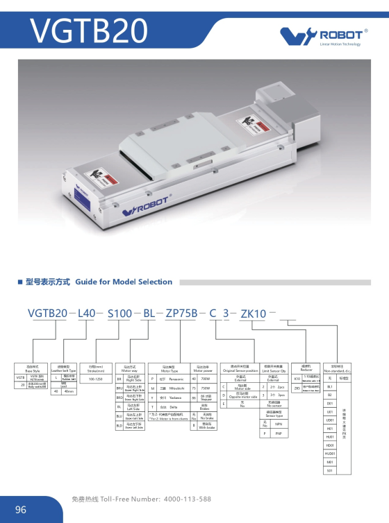 Website: cncmotion.vn • Đại lý W-Robot Việt Nam – tư vấn kỹ thuật & báo giá nhanh. *Các giá trị là tham khảo theo catalog; cần tính toán quán tính tải, gia tốc, profile S-curve trước khi chốt cấu hình servo/hộp số. *Thành phần có thể thay đổi giữa các model; hãy đối chiếu catalog mới nhất trước khi chốt mã.VGTB Series – Module tuyến tính điện tích hợp - dây đai tốc độ cao (Embedded Belt Linear Module)