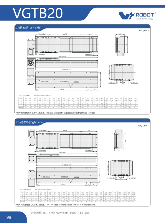 VGTB20 Module truyền động tuyến tính dây đai Dòng VGTB (Dẫn hướng tuyến tính tích hợp, Tiêu chuẩn TOYO)