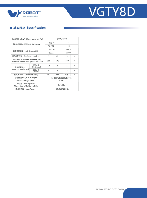 VGTYD8 Module truyền động tuyến tính vít me Dòng VGTYD (Mỏng nhẹ, Lực đẩy cao)