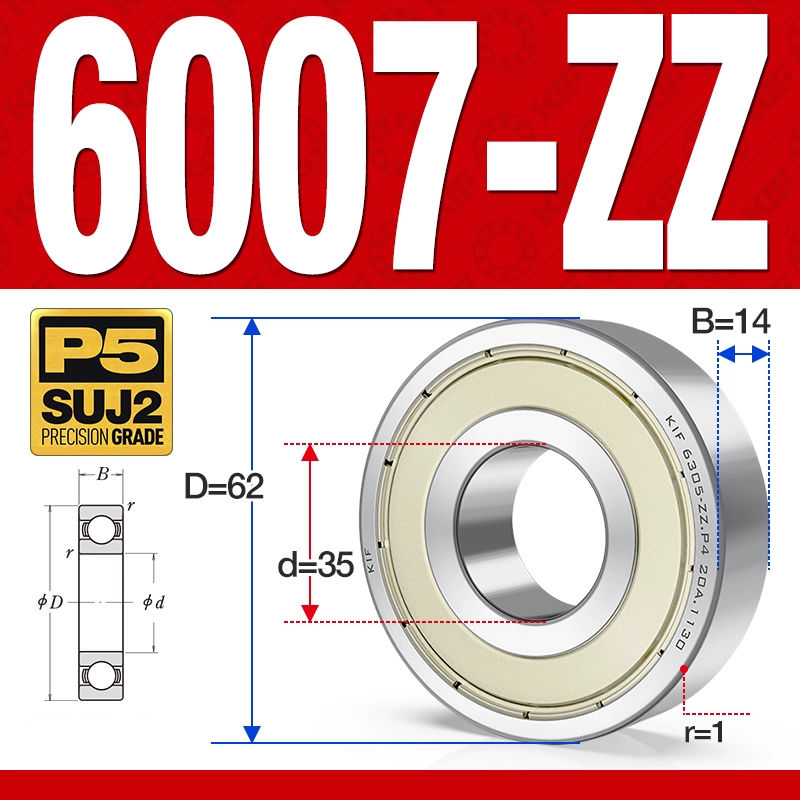 Vòng bi – bạc đạn 6007-ZZ (Phớt kim loại – 35*62*14 mm)
