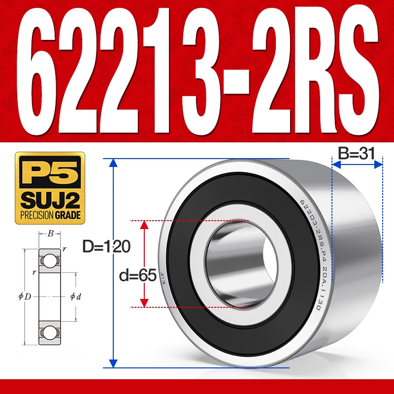 Vòng bi – bạc đạn 62213-2RS (Bi cầu 2 dãy – Phớt cao su – 65*120*31 mm)