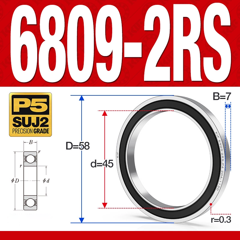 Vòng bi – bạc đạn 6809-2RS (Phớt cao su – 45*58*7 mm)