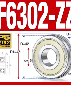 Vòng bi – bạc đạn F6302-ZZ (Mặt bích – phớt kim loại – 15*42*13 mm)