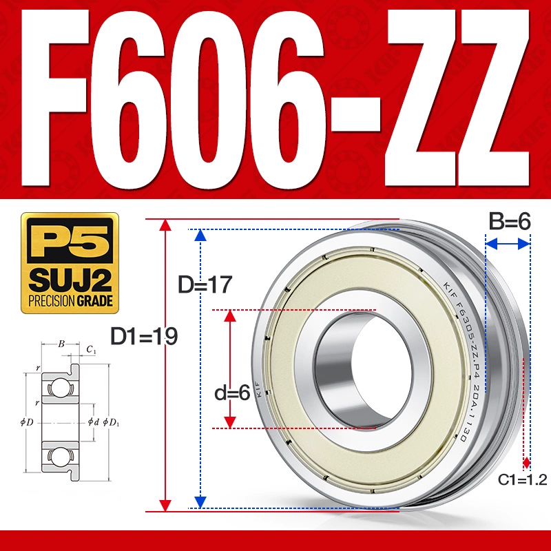 Vòng bi – bạc đạn mini F606-ZZ (Mặt bích – 6*17*6 mm)