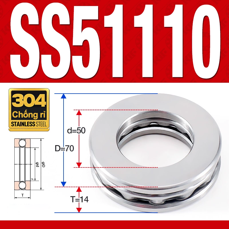 Vòng bi – bạc đạn SS51110 (Chặn trục – Inox 304 – 50*70*14 mm)