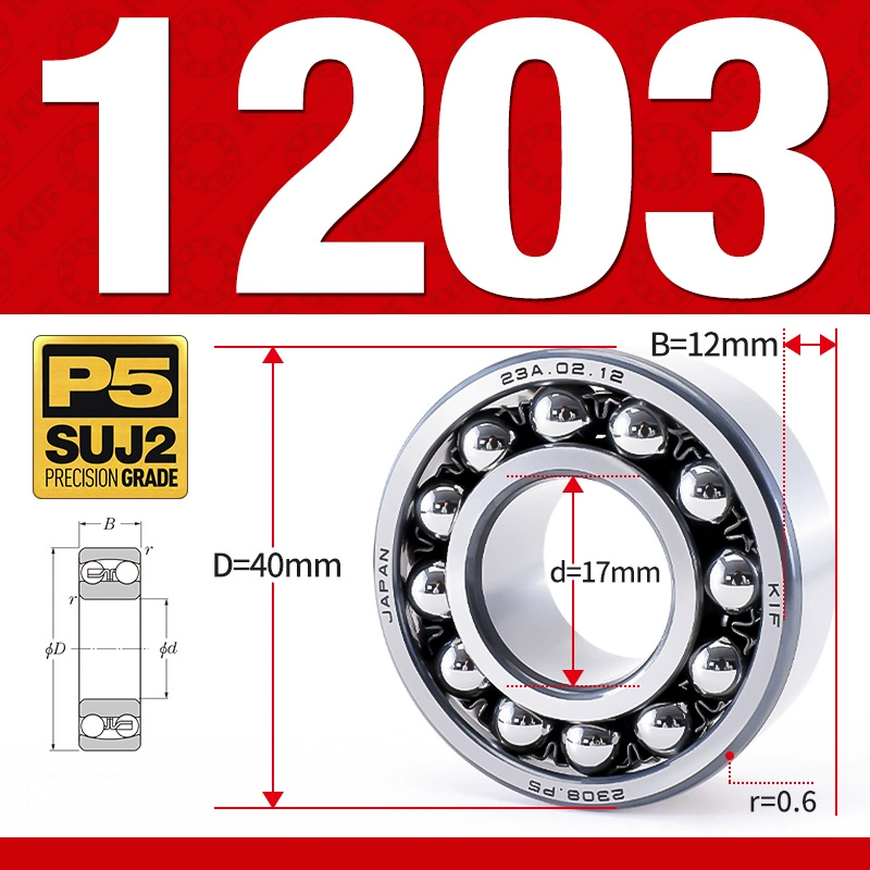 Vòng bi – bạc đạn tự lựa 1203 (Bi cầu – 2 dãy – 17*40*12 mm)