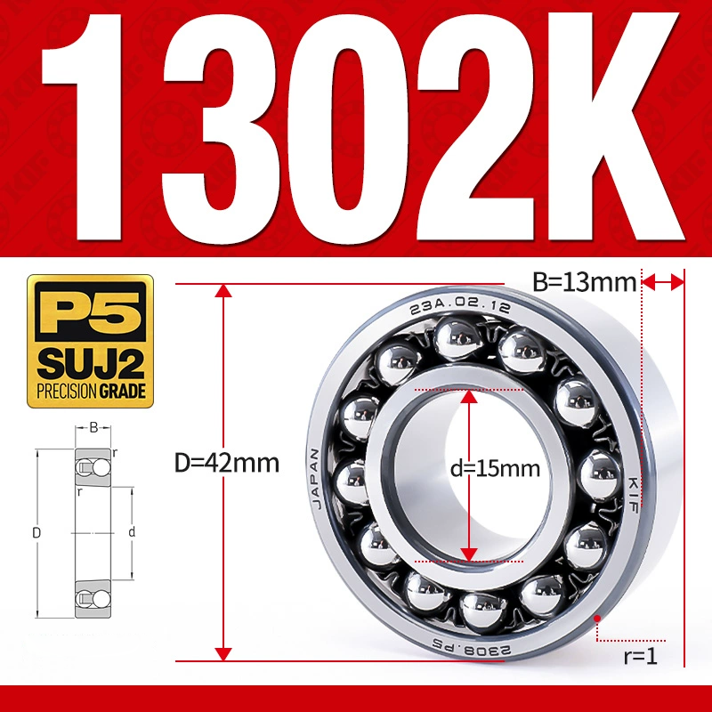 Vòng bi – bạc đạn tự lựa 1302K (Lỗ côn – 15*42*13 mm)