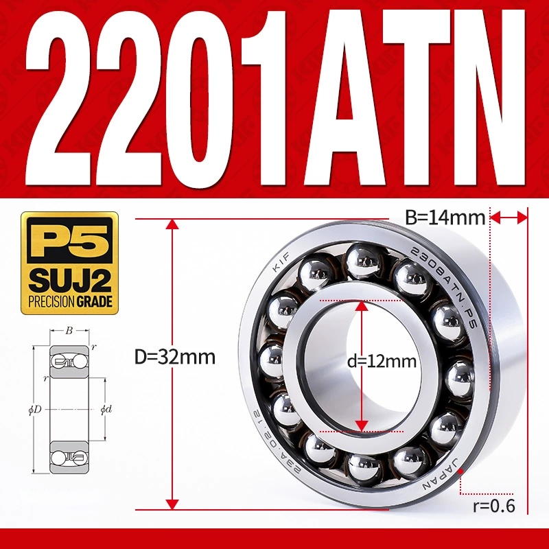Vòng bi - bạc đạn tự lựa 2201ATN (Chịu nhiệt - vòng cách bi Nylon - 12*32*14 mm)