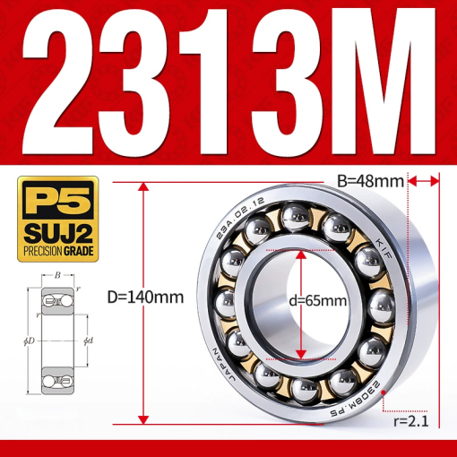 Vòng bi – bạc đạn tự lựa 2313M (Chịu nhiệt – vòng cách bi Đồng – 65*140*48 mm)