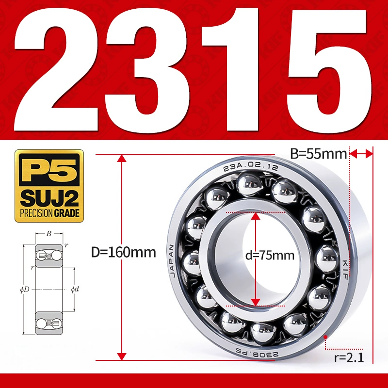 Dòng 22xx/23xx có kích thước lớn hơn 12xx/13xx ở cùng d → khả năng tải cao hơn. Hai dãy bi bố trí tiếp xúc góc đối xứng → chịu tải kết hợp (kính + dọc trục hai chiều) với độ cứng vững cao.