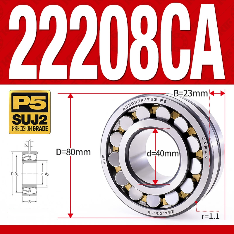 Vòng bi cà na tự lựa 2 dãy – bạc đạn cà na 22208CA/W33 (Có rãnh bôi trơn – lồng cách bi Đồng – kt 40*80*23 mm)
