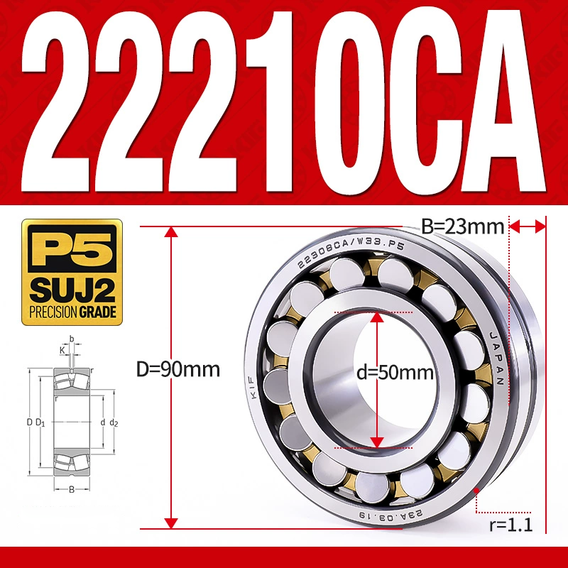 Vòng bi cà na tự lựa 2 dãy – bạc đạn cà na 22210CA/W33 (Có rãnh bôi trơn – lồng cách bi Đồng – kt 50*90*23 mm)