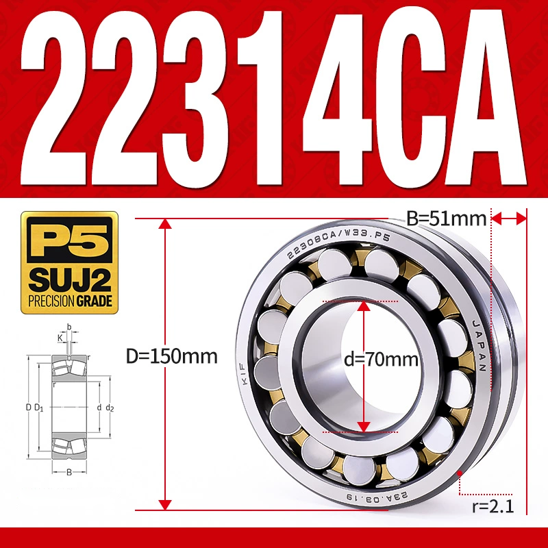 Vòng bi cà na tự lựa 2 dãy - bạc đạn cà na 22314CA/W33 (Có rãnh bôi trơn - lồng cách bi Đồng - kt 70*150*51 mm)