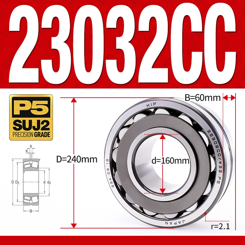 Vòng bi cà na tự lựa 2 dãy – bạc đạn cà na 23032CC/W33 (Có rãnh bôi trơn – lồng cách bi Thép – kt 160*240*60 mm)