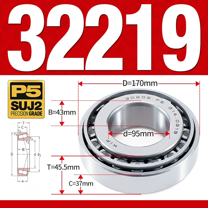 Vòng bi côn 1 dãy bi – bạc đạn bánh xe 32219 (Kích thước – 95*170*45.5 mm)