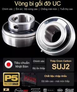 Vòng bi UC có cổ chặn và ốc siết/eccentric; lắp vào nhiều loại vỏ (P/PA/F/FL/FC/T…).