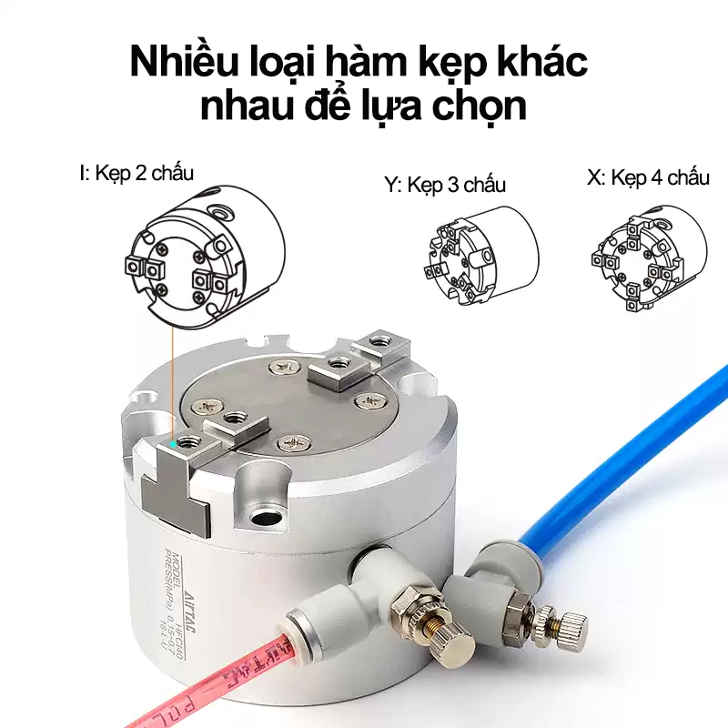đóng – mở chấu kẹp, phục vụ thao tác gắp, giữ, định vị, kẹp chặt sản phẩm trong tự động hóa.