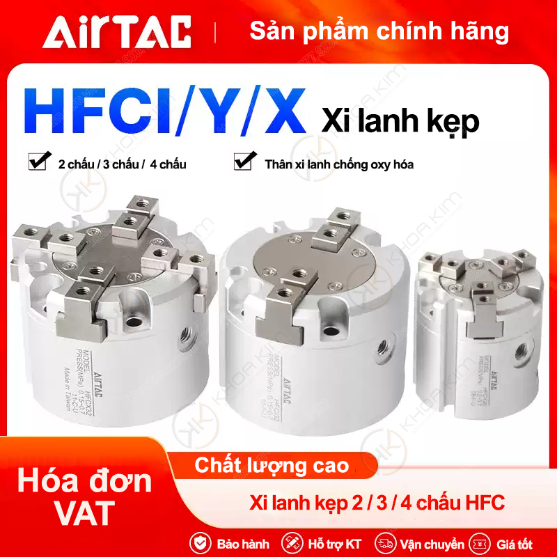 “xi lanh kẹp 2 chấu Airtac”, “xi lanh kẹp 3 chấu Airtac”, “xi lanh kẹp 4 chấu Airtac”. Mẹo: Với sản phẩm dễ trầy xước, có thể bọc cao su/PU ở đầu chấu hoặc thiết kế chấu có đệm để tăng ma sát và giảm hư hại bề mặt. Cung cấp đầy đủ HFCI / HFCY / HFCX size 16–63. Hỗ trợ chọn đúng loại chấu theo sản phẩm, gợi ý thiết kế chấu và phụ kiện khí nén đi kèm.HFC Series – Xi lanh kẹp Airtac (Gripper Cylinder) 2/3/4 chấu