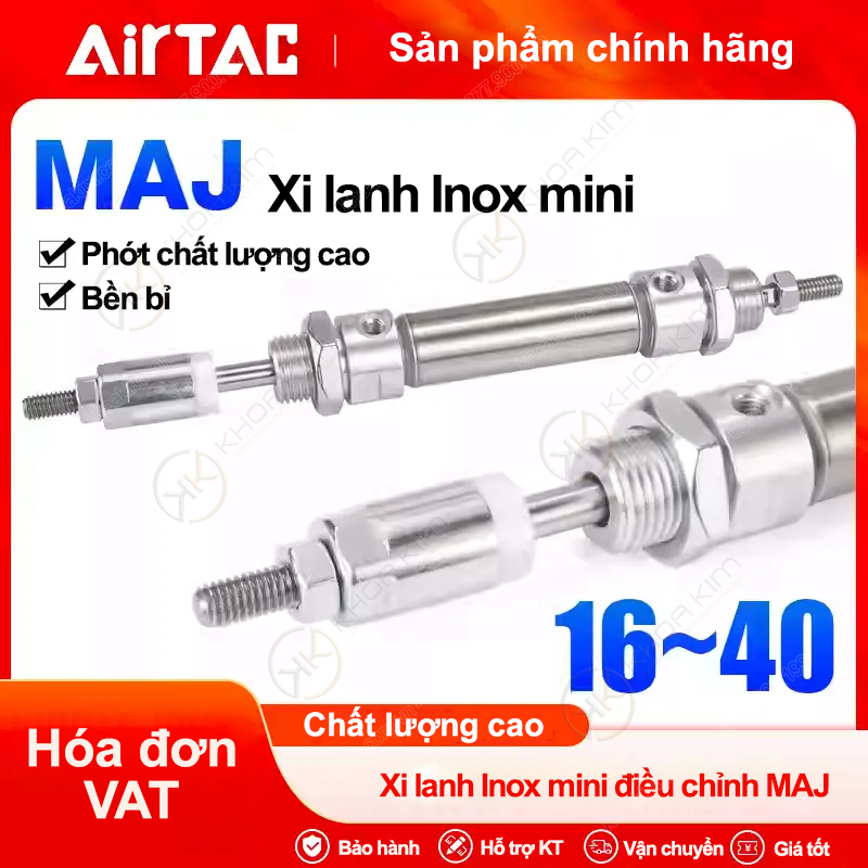 Nhờ thiết kế nhỏ gọn, chắc chắn và dễ lắp đặt, xi lanh MAJ phù hợp cho nhiều hệ thống tự động hóa hiện đại. Khi mua tại Khoa Kim Việt Nam, khách hàng được đảm bảo sản phẩm Airtac chính hãng 100%, đầy đủ CO/CQ, giá cạnh tranh, tư vấn kỹ thuật tận tình và giao hàng nhanh toàn quốc, mang đến giải pháp xi lanh khí nén hiệu quả, bền bỉ và tối ưu chi phí.