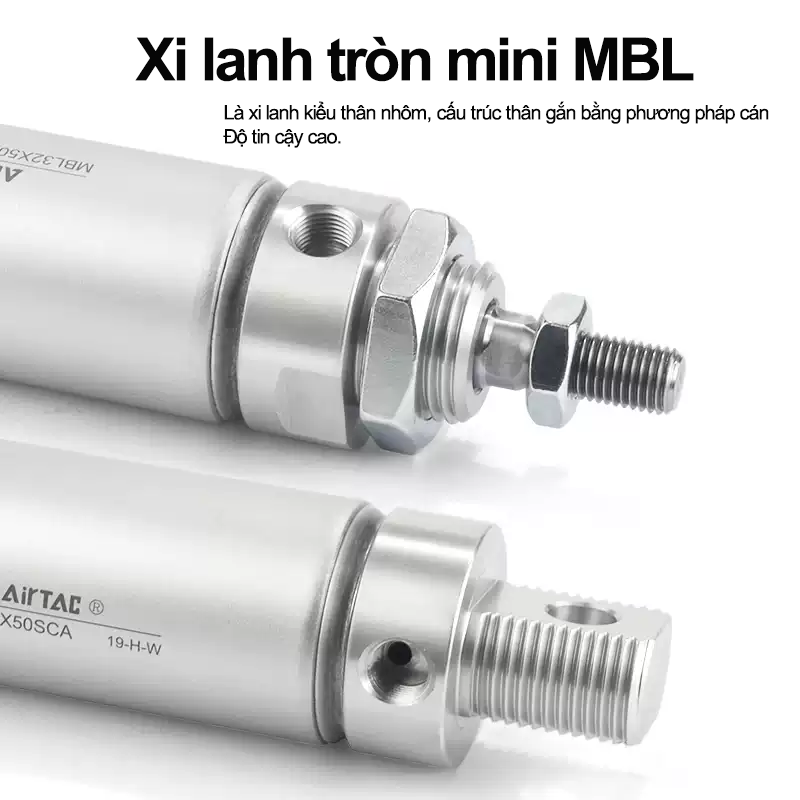 Xi lanh tròn mini MBL - SCA của Airtac là dòng xi lanh khí nén thiết kế dạng thân tròn,