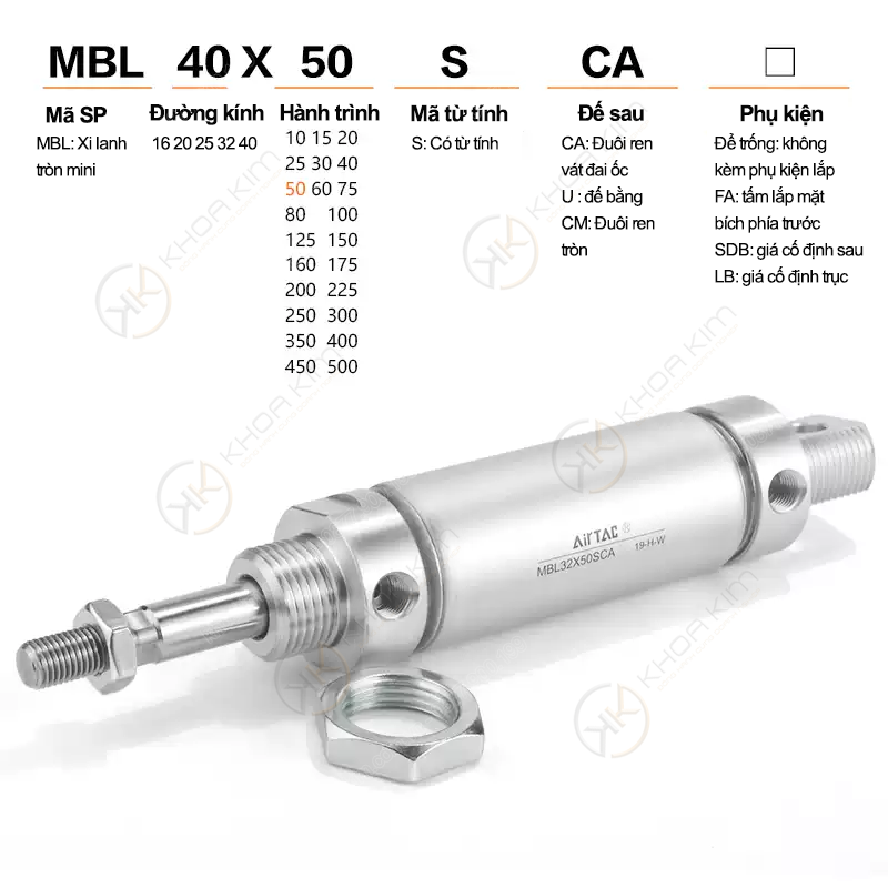 Bảng mã sản phẩm đầy đủ – Xi lanh tròn mini Airtac MBL - SCA