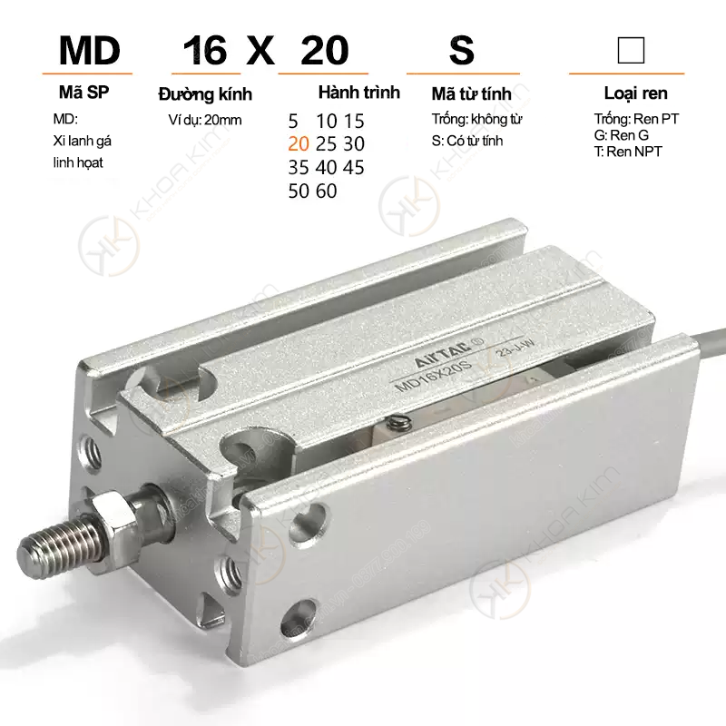 Bảng mã sản phẩm đầy đủ – Xi lanh gá tự do Airtac MD Series