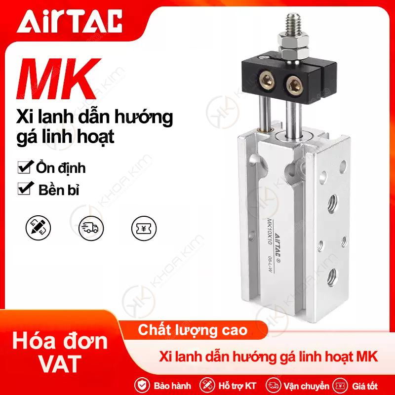 Tự động hóa Khoa Kim – Cung cấp xi lanh Airtac chính hãng: MK, MAL, SDA, SC, TN, CQ2… kèm phụ kiện gá, cảm biến, van điện từ, cút nối nhanh. Gợi ý kỹ sư: Nếu ty làm việc trong môi trường bụi/phoi hoặc có tải lệch, ưu tiên bố trí dẫn hướng tốt và dùng gá phù hợp để tăng tuổi thọ phớt. Lưu ý: Thông số chi tiết (áp suất làm việc, vật liệu phớt, ren cổng khí, lực đẩy theo áp suất…) cần đối chiếu datasheet MK theo đúng mã.